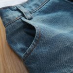- Mini-jupe en Jean : forme légèrement évasée, avec élégants volants à la base, poches latérales pratiques, ouverture boutonnée devant et passants pour ceinture à la taille
