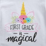 Assurez le choix idéal en consultant notre guide des tailles. L’imprimé coloré à l’avant du tee-shirt, arborant l’inscription “First grade is magical”, complète harmonieusement la jupe denim stylée et pratique avec ses caractéristiques fonctionnelles et ses décorations élégantes. Parfaite pour un style girly et amusant !